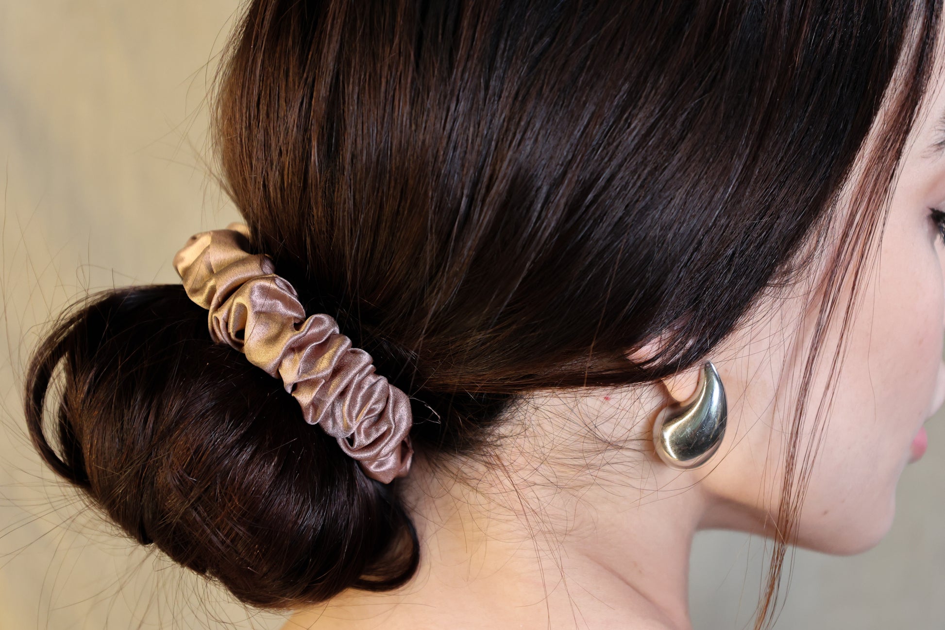 Crafted from 100% silk, this midi scrunchie offers a soft, lightweight hold with a touch of everyday luxury. Its mid-size silhouette adds gentle volume—perfect for effortless styling, day or night.