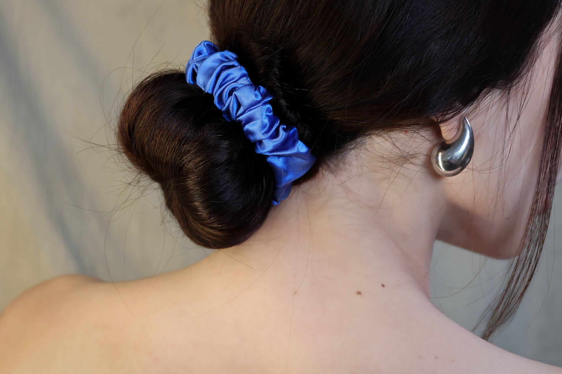 Crafted from 100% silk, this midi scrunchie offers a soft, lightweight hold with a touch of everyday luxury. Its mid-size silhouette adds gentle volume—perfect for effortless styling, day or night.