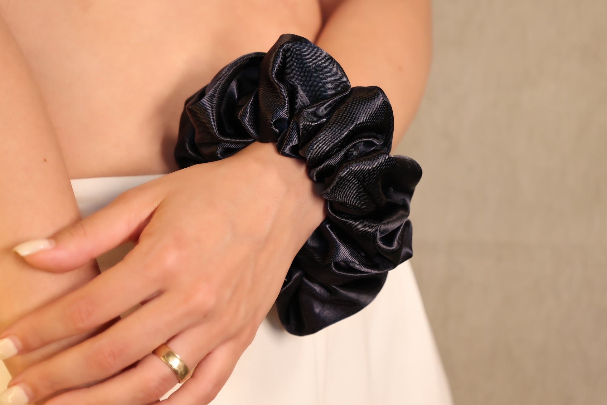 Designed for bold volume and a sleek finish, this extra-large scrunchie is crafted from glossy sateen for a luminous, silky look. Lightweight and gentle on strands, it’s perfect for statement styling with everyday ease.